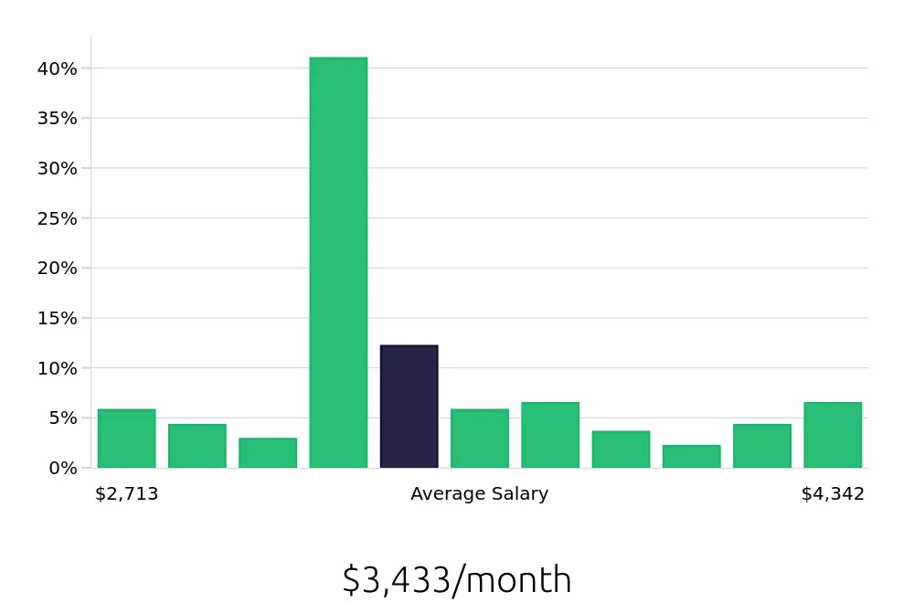 The salary distribution shows that most Baristas fall within the middle range. About 42.75% of Baristas earn between $39,498 and $41,811 per year. This central cluster indicates a stable and consistent earning potential for those in the field. Additionally, the data reveals that the highest percentage of Baristas, 9.50%, earn between $41,811 and $44,124 annually. This range highlights the potential for growth and advancement in the role. Job seekers can use this information to set realistic expectations and plan their career progression.