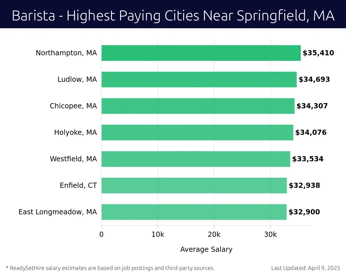 What are the highest paying cities for a Barista near Springfield, MA?