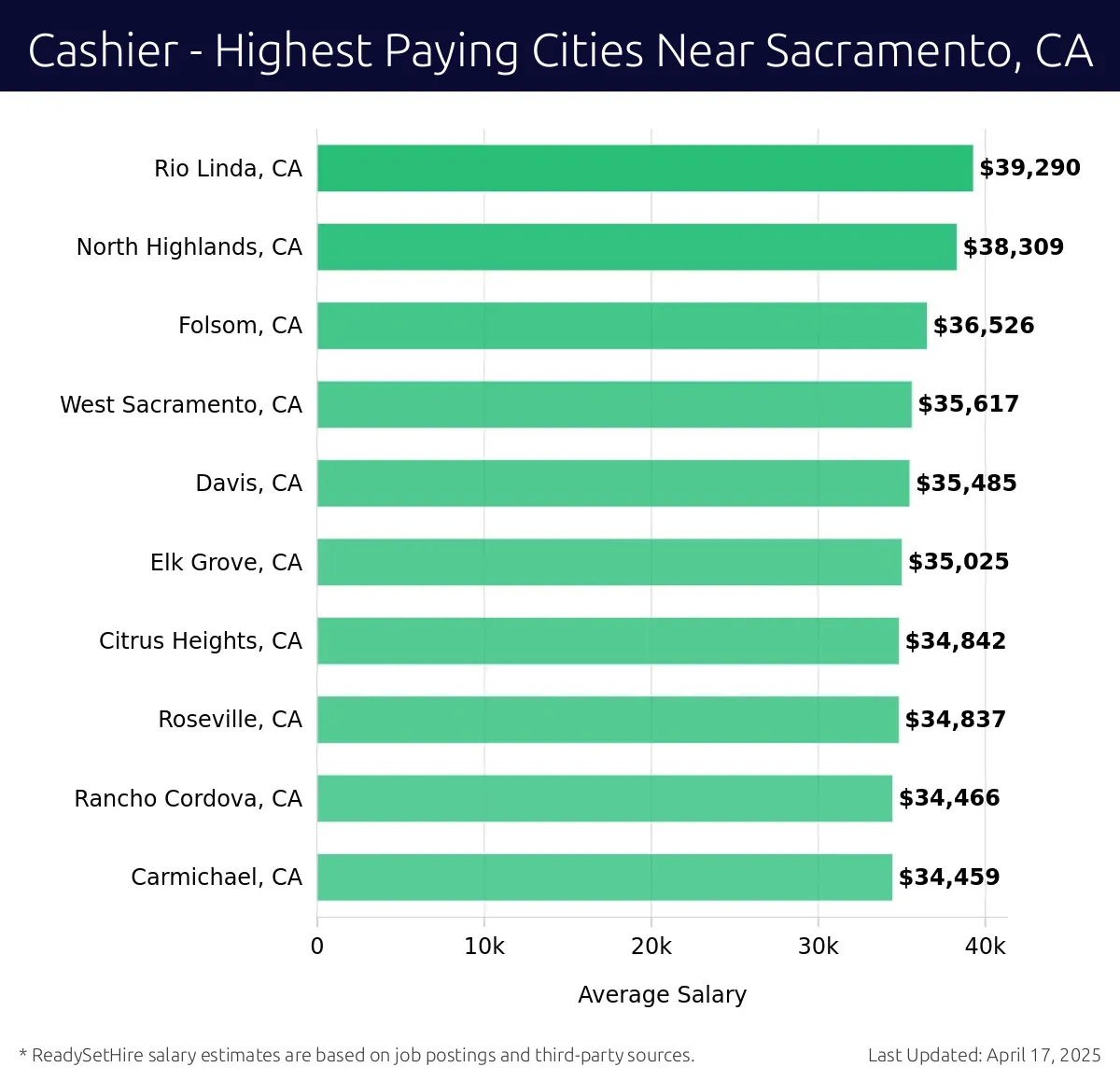 What are the highest paying cities for a Cashier near Sacramento, CA?