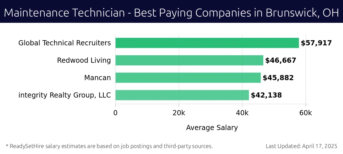 What are the best paying companies for a Maintenance Technician in Brunswick, OH?