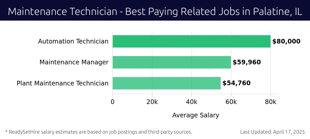 A Maintenance Technician in Palatine, IL, earns a competitive salary. The average salary for this role is around $55,097 per year. This figure can vary based on experience, skills, and the specific employer. Many technicians find that with a few years of experience, their salary can increase significantly.