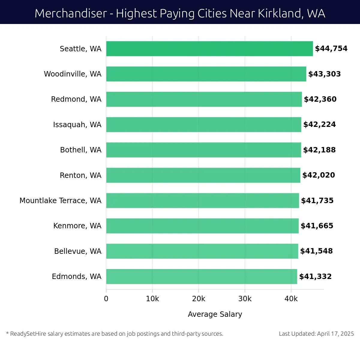 What are the highest paying cities for a Merchandiser near Kirkland, WA?