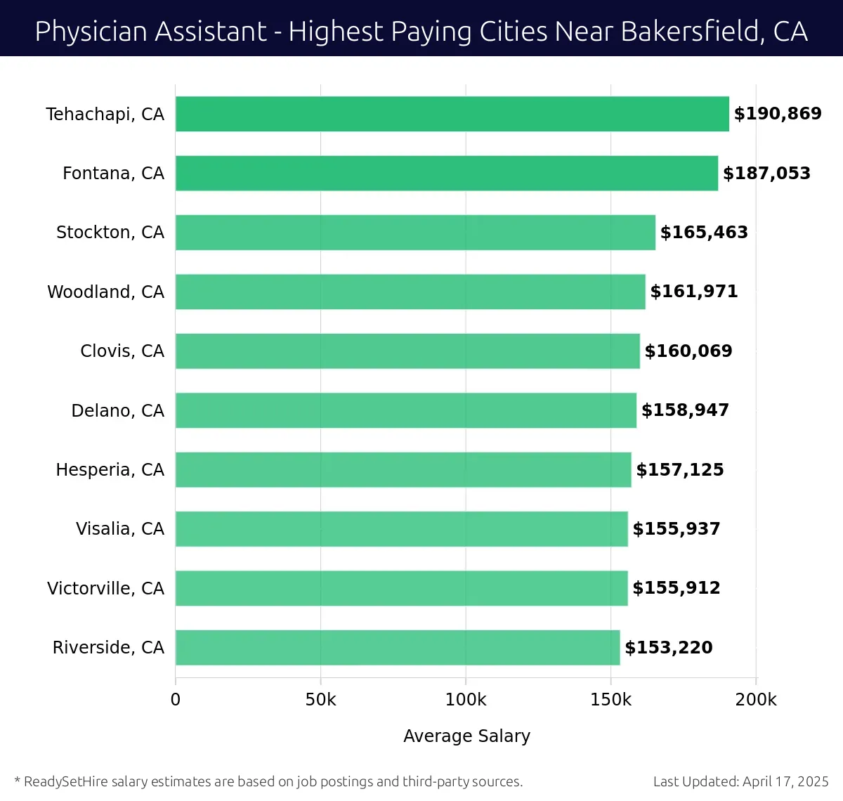 What are the highest paying cities for a Physician Assistant near Bakersfield, CA?